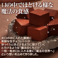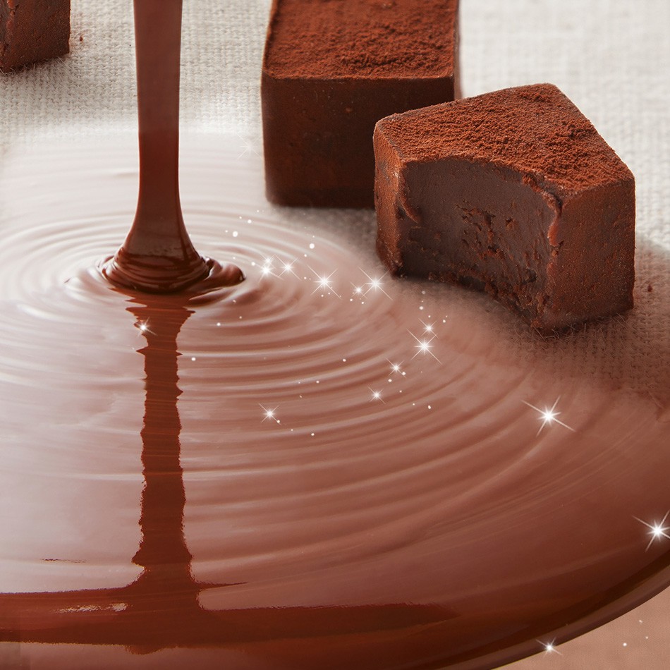 お口の中に入れた瞬間に新鮮な生チョコレートがゆっくりとほどけるように溶けていくとろけるような“魔法のくちどけ”。