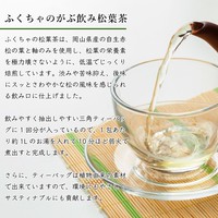 ふくちゃの松葉茶は、岡山県産の自生赤松の葉と軸のみを使用し、松葉の栄養素を極力壊さないように、低温でじっくり焙煎し、渋みや苦味を抑えた飲み口に仕上げています。