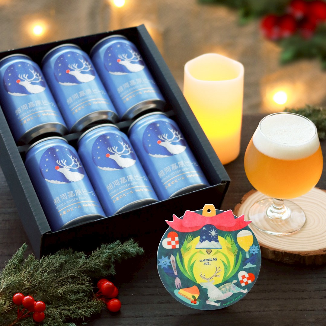 より沢山の人にクリスマスを楽しんでほしい、そんな想いを込めてクリスマス特別仕様の赤鼻シール付き「銀河高原ビール」と「tupera tuperaコラボカード」の限定セットをお選びいただけます。