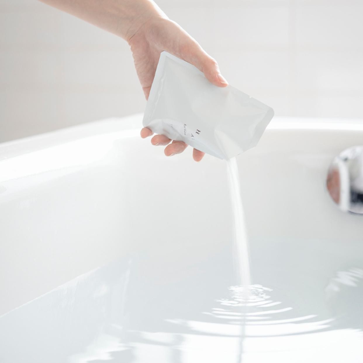 HAA for bathは風呂釜や浴そうをいためてしまう原因となるイオウを含まない製法でつくっています。ご自宅のお風呂でも天然温泉気分をお楽しみください。