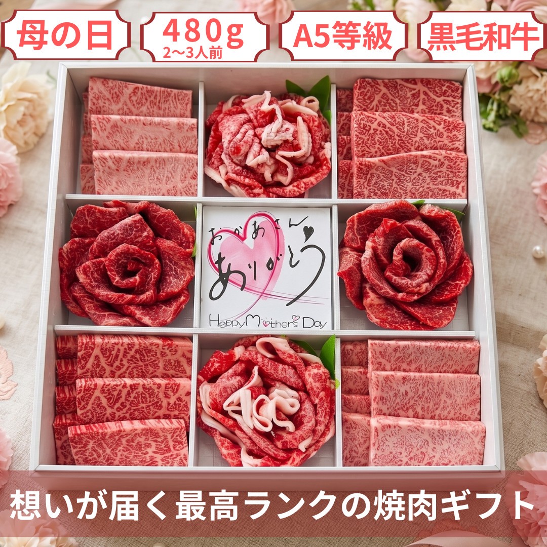 上質な脂の旨味が溢れる特上ロース、あっさりとした味わいの赤身、トモバラ使用の上カルビ、程よい食感と濃厚な味わいのブリスケを使用したカルビの4種を可愛い花型に盛り合わせました。つけだれとハート型の牛脂もセットになっていて、プレゼントにおススメです。