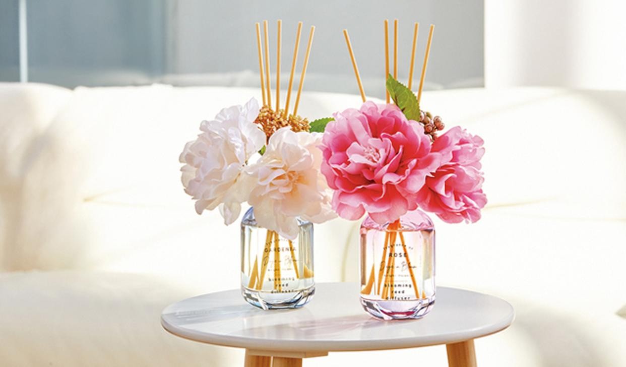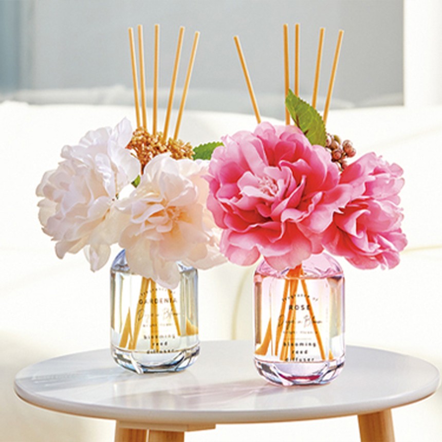 芳醇なアロマとボリュームのある花が、咲き香る大輪の花々のようにインテリアのアクセントになるリードディフューザー。