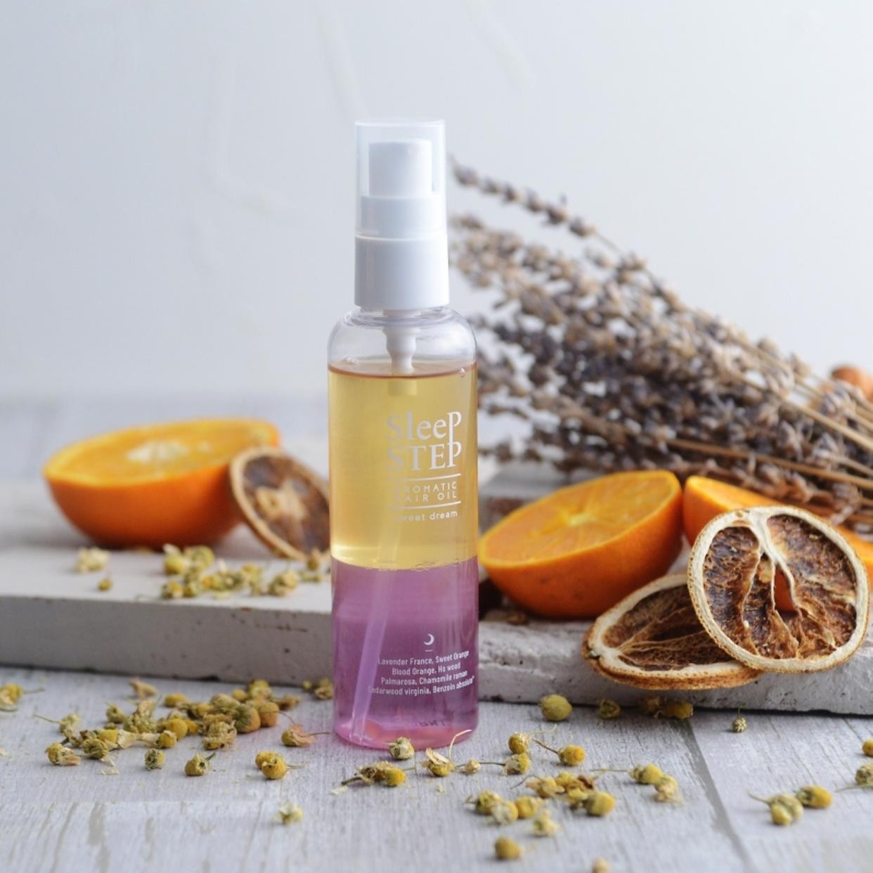 アロマやハーブを扱うメーカー、フレーバーライフ社が、睡眠改善インストラクターで、眠りとお風呂の専門家である小林麻利子さんによる監修で作り上げたヘアオイル。美しい見た目もさることながら、髪も心もうっとり癒してくれる香りが大きな特徴です。