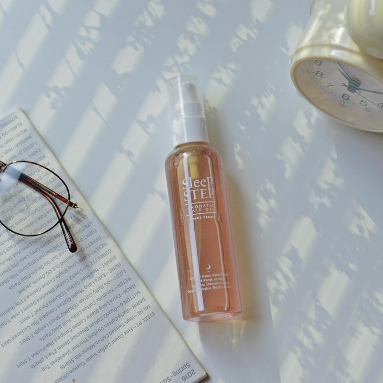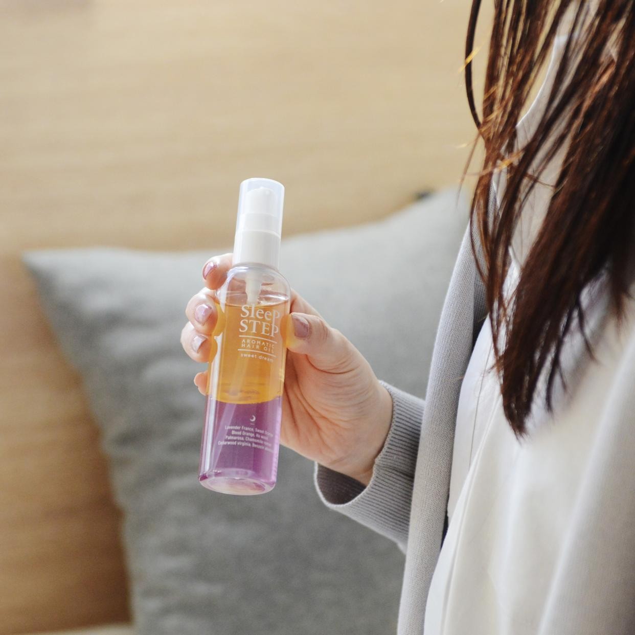 お風呂上がりのケアに加えるだけで、美髪をキープしつつ睡眠をサポート。これ一本で2つの役割を果たしてくれる、美しい2つのカラーが際立つヘアオイルです。髪につける前に、このオイル層とセラム層を優しく振って混ぜ合わせてから使うタイプで、アロマ専門のメーカーと眠りの専門家のコラボから生まれた一品らしく、心地よい香りが広がります。