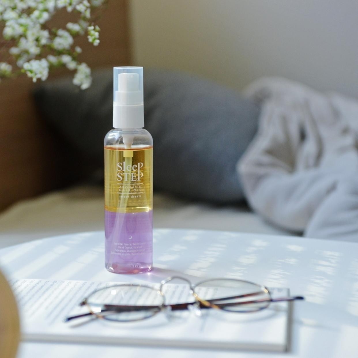 品質の良い8種のアロマオイルをブレンドし、髪の潤いをキープしつつ、心地良い香りを纏うことができるから、ベッドの中でも香りに包まれながら眠りにつくことができますよ。