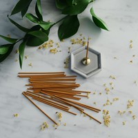 セットのプレートとホルダーも、お香そのものもみんなコンパクト。こぢんまりとした小さめのサイズも可愛らしく、愛着が湧きそうです。火さえあればすぐに香り時間が始まりますよ。