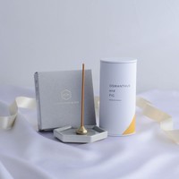 サイズ:お香/93mm、パッケージ/φ50×103mm、香立てセットパッケージ/W80×80×23mm、小皿/75×65×11mm、スタンド/φ16×10mm