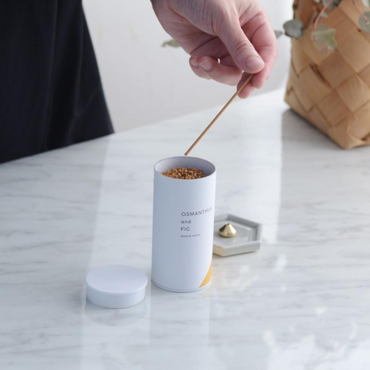 夏の終わりにお出かけすると、ふと出くわす金木犀の香り。毎年あの瞬間を楽しみにしているという方も多いのでは。お花の甘い香りに、みずみずしいいちじくを加えたオスマンサスとフィグの香りのお香で、火を灯すと薫る香りに心満たされます。
