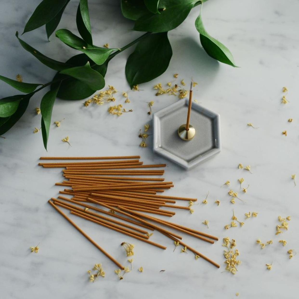 こちらのお香は、おうち時間を豊かにするために作られた香り成分を濃く配合した線香。香りのトレンド「金木犀(オスマンサス)」をベースにした甘く繊細な香りが広がります。
