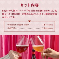 ■内容量:INEDIT イネディット 330ml×1本, koyoi Passion night view 375ml×1本、お酒のブランドブック、ポストカード1枚ずつ