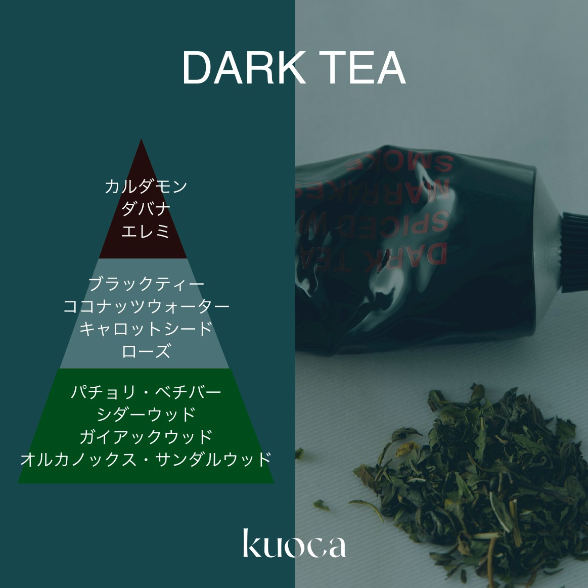 ティーカップを口にした時の様な、瞬間的に広がる異国情緒的な香り。不安を鎮めるVetiver。香ばしく重みのあるGaiac Woodに乾した紅茶の葉の香りを加えました。