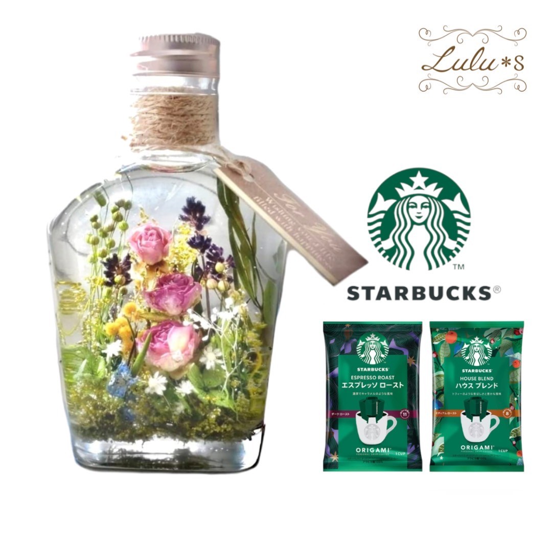ナチュラルガーデンハーバリウムとスターバックスドリップコーヒーの2種類2本セットになります。