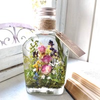 イングリッシュガーデンのようなハーブガーデンのようなナチュラルなお庭をガラスの瓶の中に閉じ込めたハーバリウムです。