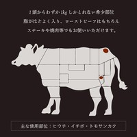 牛一頭から1kgしかとれない希少部位を使用した黒毛和牛のブロック肉。自分好みの焼き方・厚みで、あなただけのオリジナルローストビーフをお召し上がりいただけます。