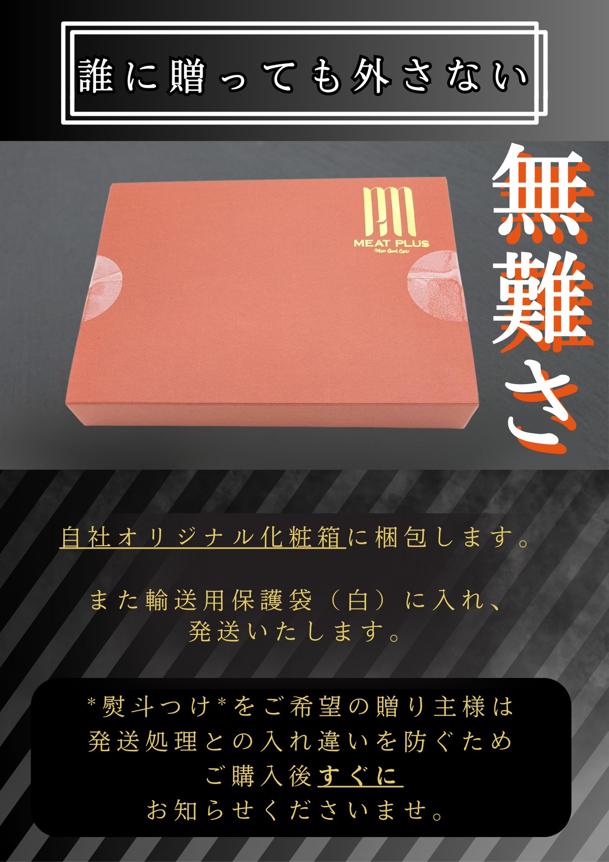 お客様に少しでも喜んで頂けるように、お肉のプロが厳選した九州産黒毛和牛をオリジナル化粧箱にお入れして、心を込めて丁寧にお届け致します。