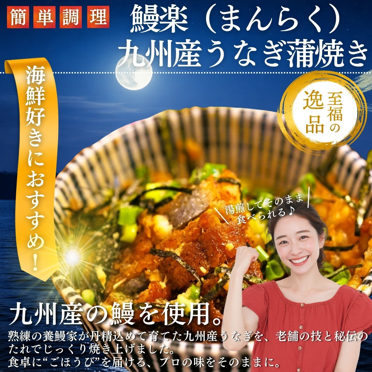 原材料:うなぎ蒲焼(うなぎ(九州産)、醤油(小麦・大豆を含む)、味醂、発酵調味料、砂糖/増粘剤(加工澱粉))(一部に小麦・大豆を含む)