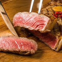 【王道の厚切りフィレステーキ】:表面を香ばしく焼き上げ、ミディアムレアでジューシーに