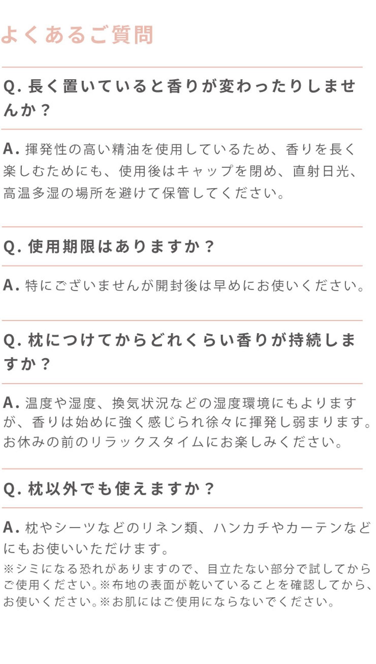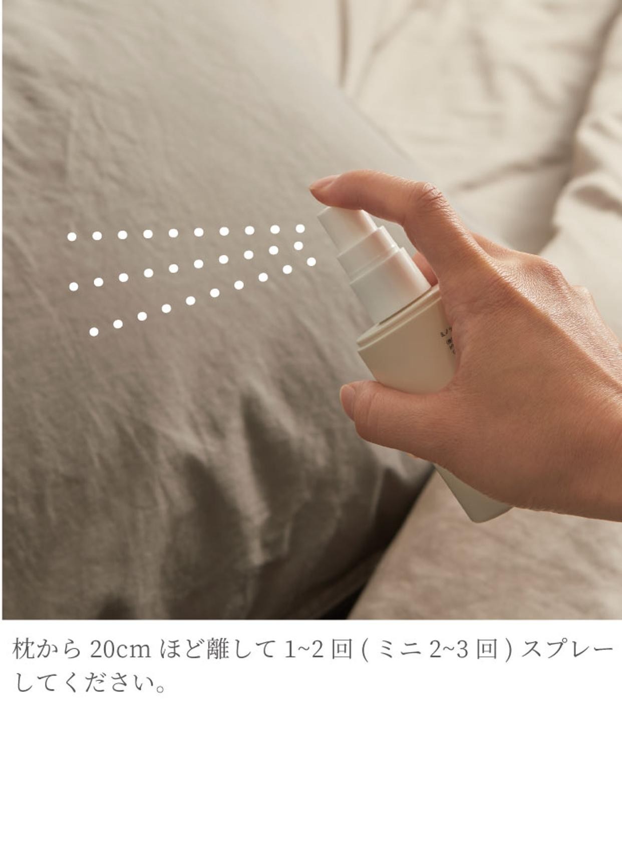 枕から20cmほど離して1~2回(ミニサイズ2~3回)スプレーしてください。
