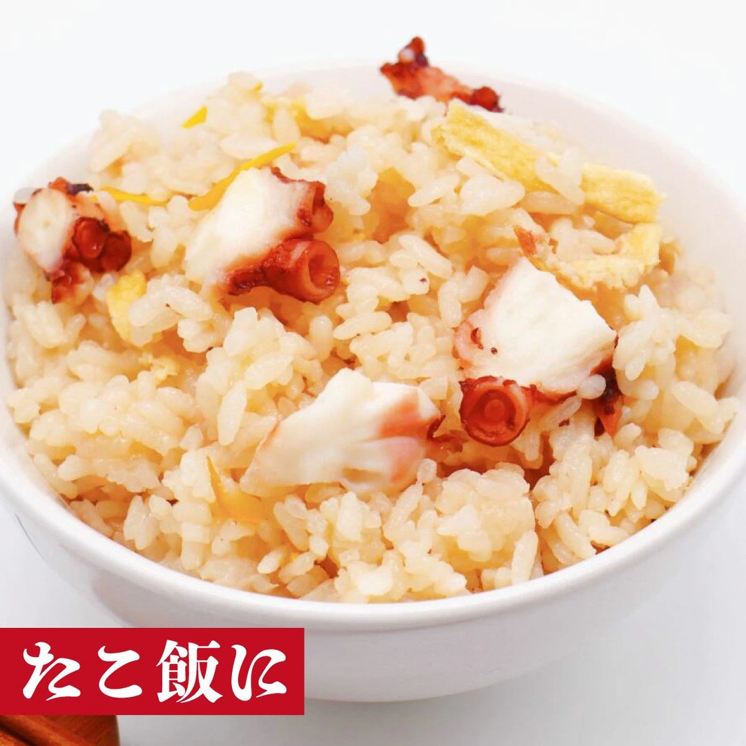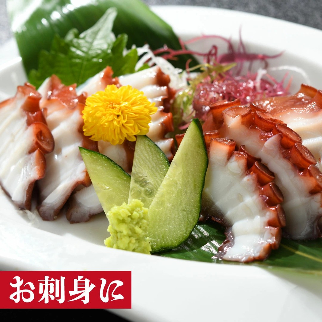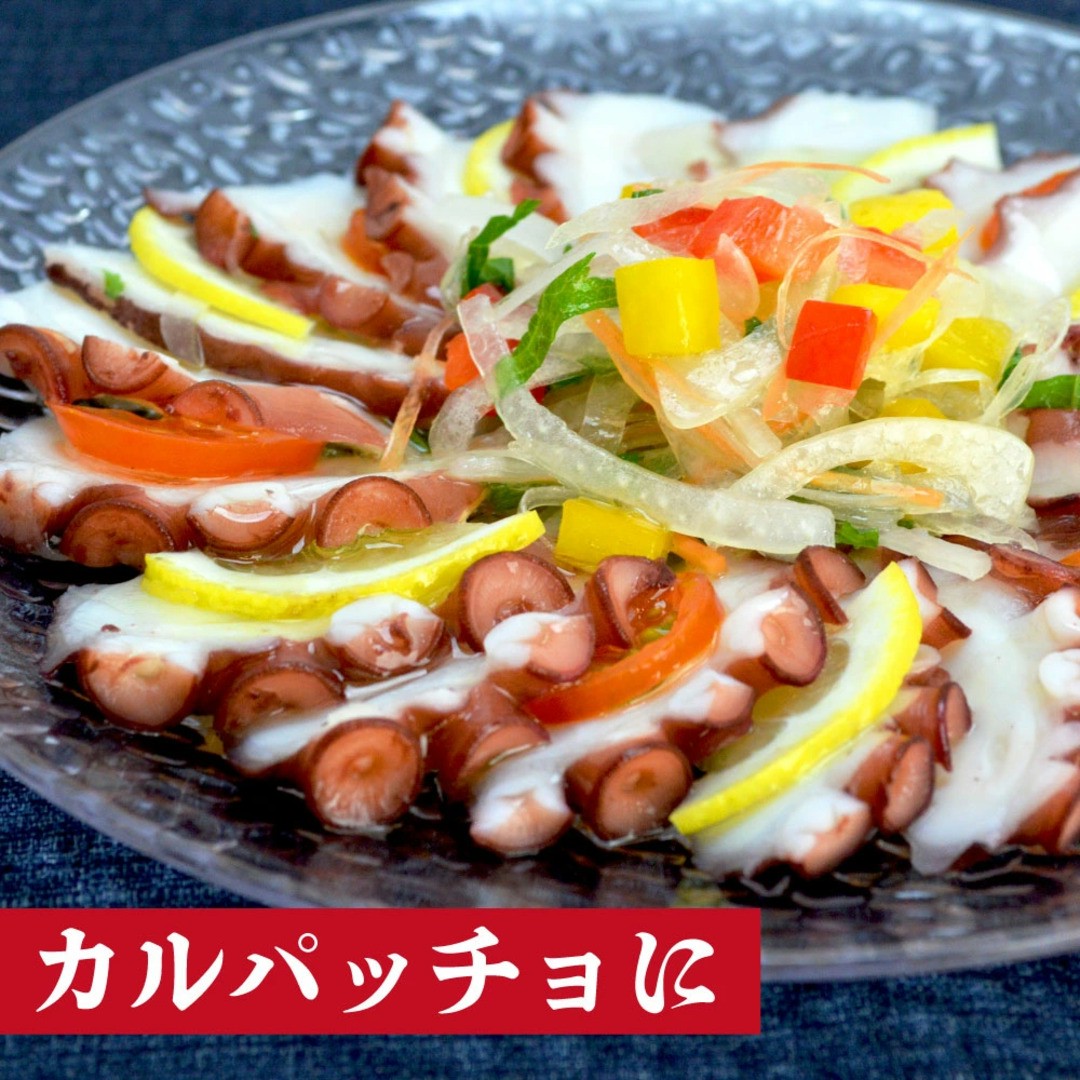 塩のみでボイルしてあるので、解凍後すぐに召し上がれます。内容量は1キロとたっぷりあるので、お刺身はもちろん、たこ唐揚げやたこ飯、カルパッチョなどさまざまな料理にアレンジできます!
