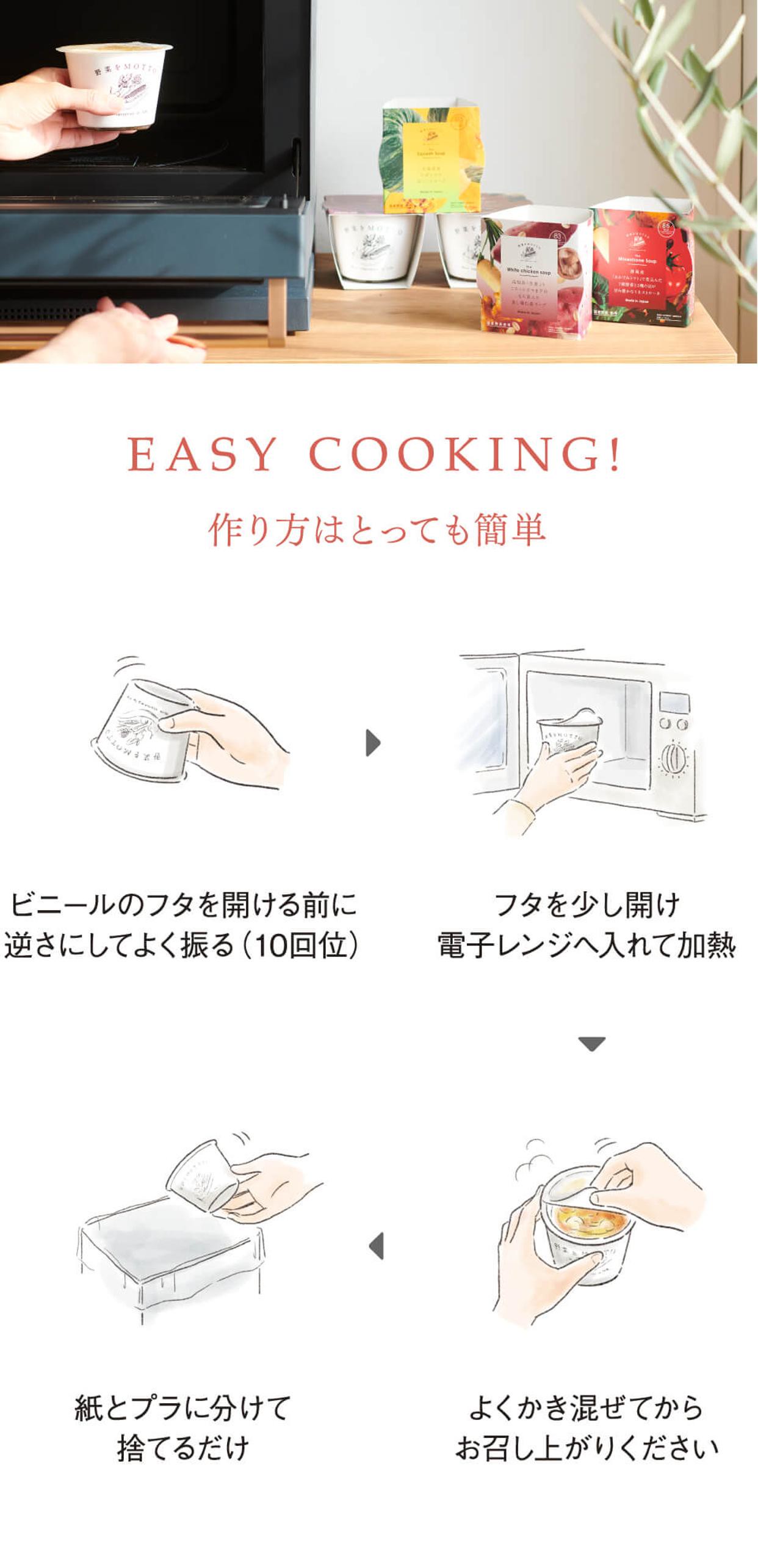 カップのままレンジで1分 ※機種・ワット数により異なる