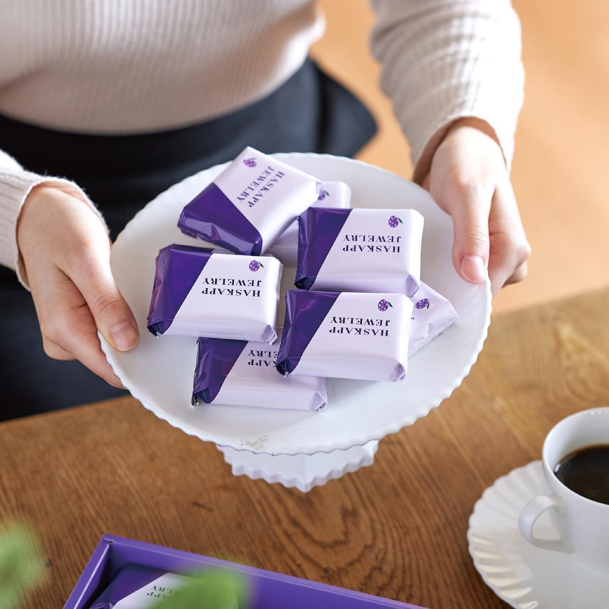 生産者が丹精込めて育てた紫に光る原石を究極のこだわりと技術で宝石のように美しく仕上げ、「北のちいさなケーキ ハスカップジュエリー」が生まれました。