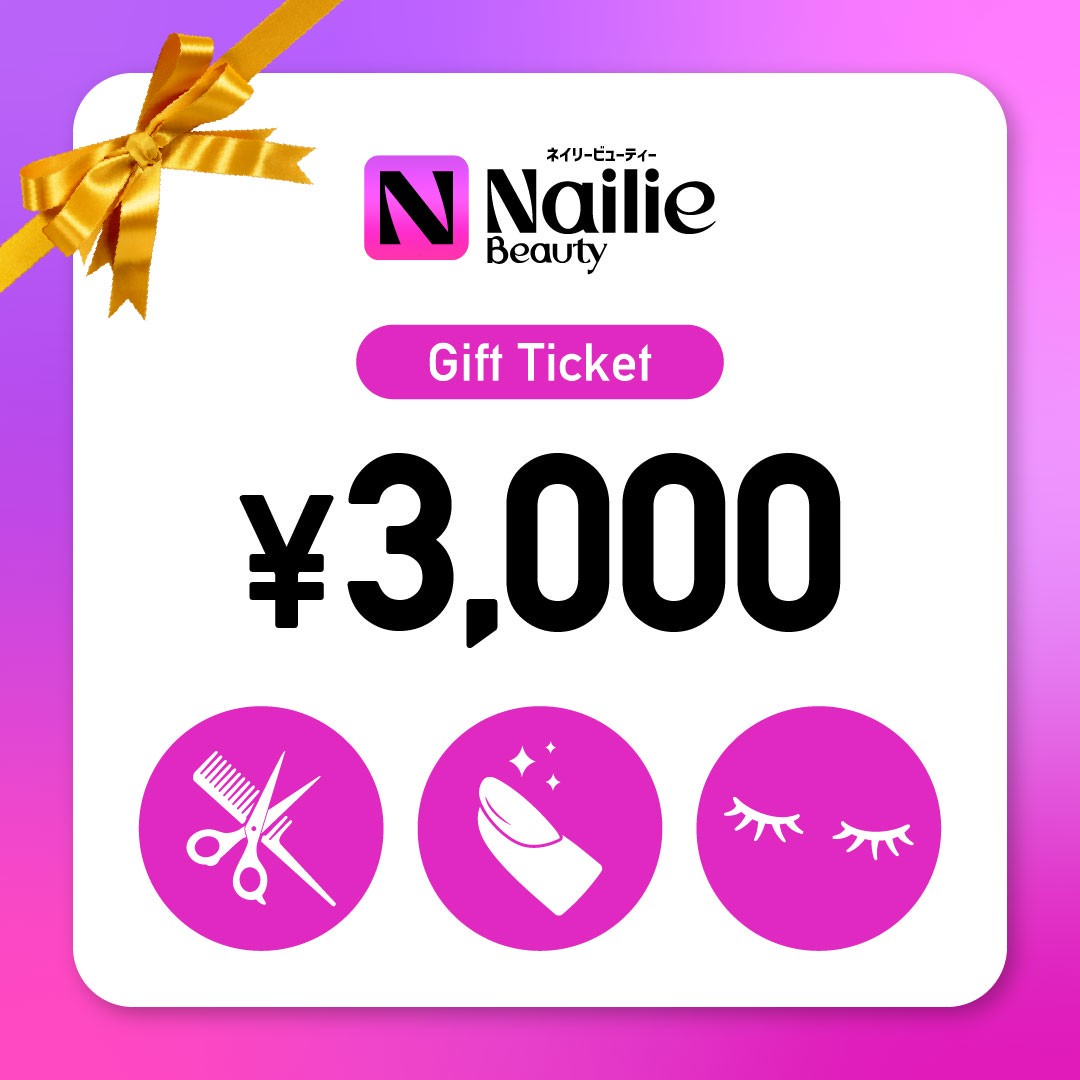 美容予約アプリNailie(ネイリー)にて、美容室ヘア予約・ネイル・アイ(まつ毛パーマ、エクステ、アイブロウ)施術でご利用いただけるギフト券です。