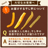 ほしいもは添加物を一切使用せずに、サツマイモ本来の甘さ、柔らかさを引き出して製造する自然商品です。お買い求めいただき、味に若干のばらつきがある場合がございます。