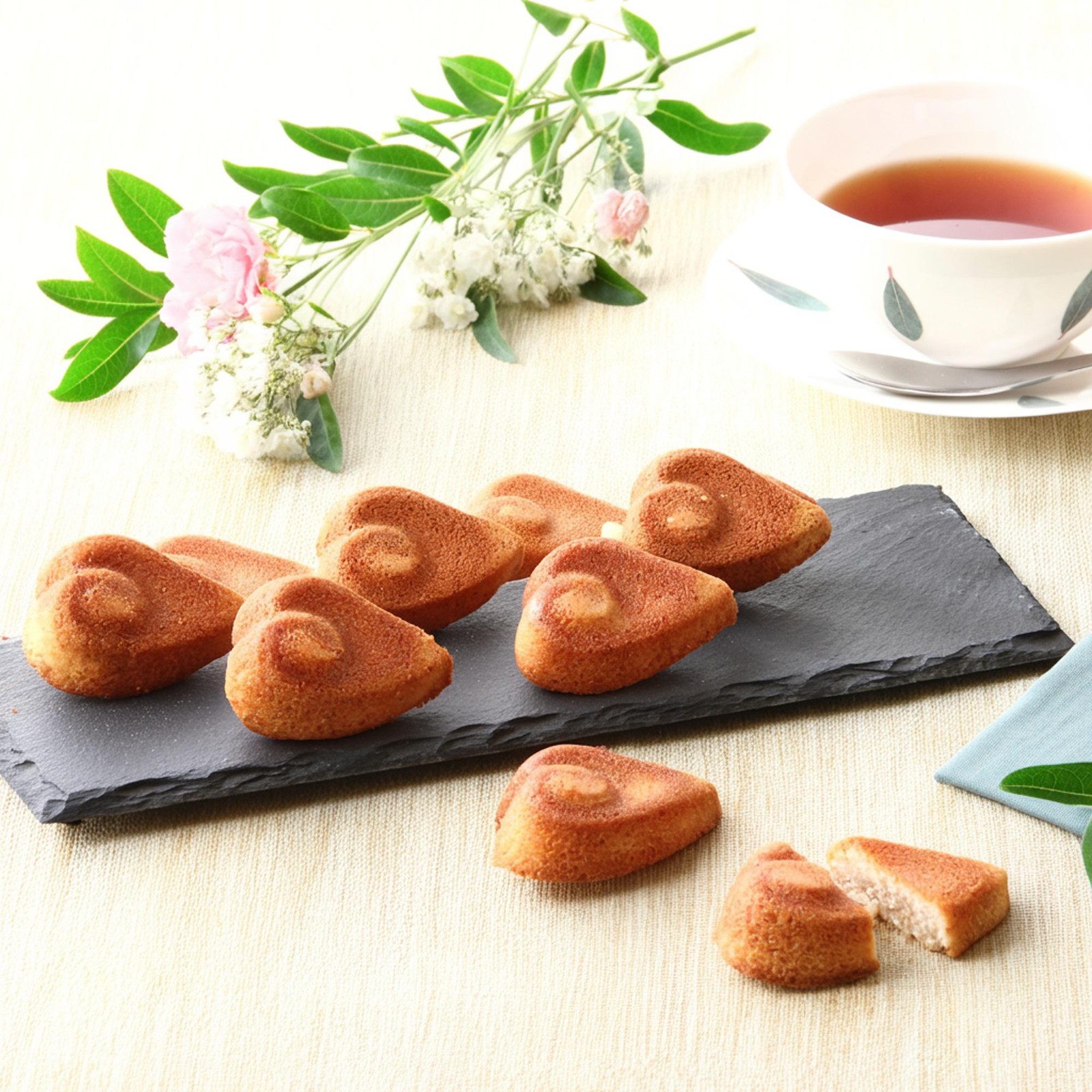 砂糖(国内製造)、卵白、マーガリン(食用油脂、発酵バター、バターオイル、その他)アーモンドパウダー、小麦粉、ミックス粉(小麦粉、砂糖)、乳等を主要原料とする食品(発酵バター、植物油脂、バターオイル、その他)、バター、牛乳、乳加工食品/膨張剤、乳化剤、香料、カロチノイド色素、(一部に小麦・卵・乳成分・アーモンド・大豆を含む)