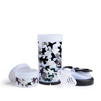 ●2層式のシェイカーで、「ボトル750ml」+「プロテインやグラノーラ、スムージー粉末やロッカーキーなど収納できるストレージコンテナ」となっています。