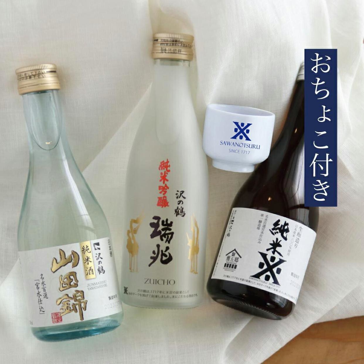 沢の鶴一押しのお酒におちょこがついた「ちょこっとセット」です。