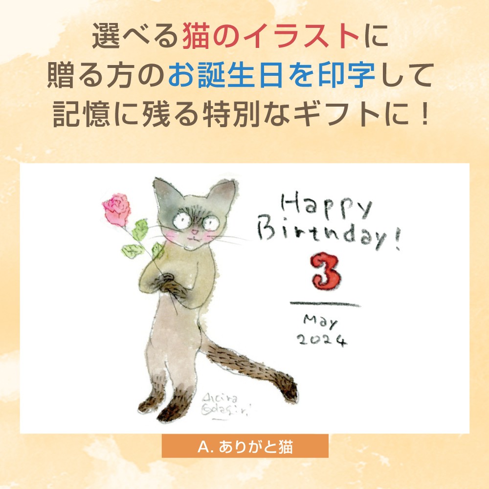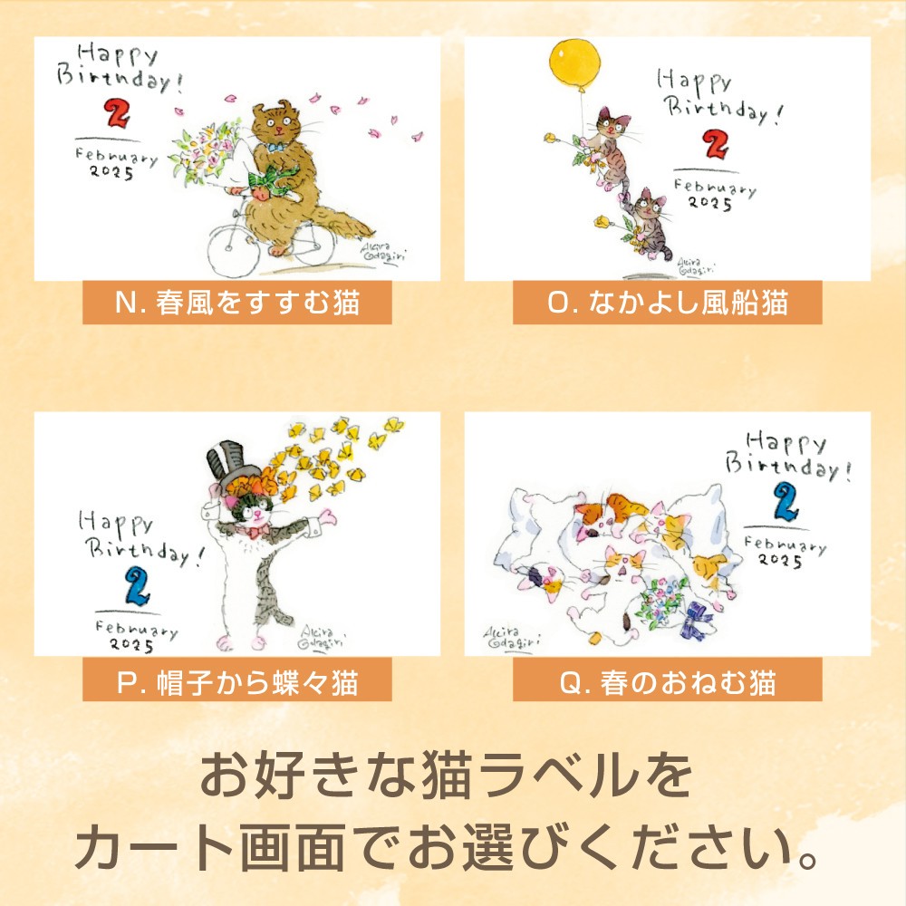 「ラベルデザイン」のボタンを押して、ラベルデザインを選択し、「名入れ」ボタンを押して誕生月と誕生日を入力ください。