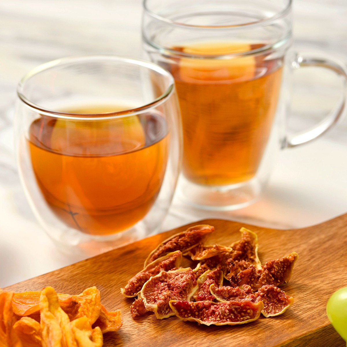 ギフトバッグの中には、砂糖や添加物などを一切使用していない、島根県で作られた国産赤梨のドライフルーツを1袋と、人気のピーチティー(5個)とマスカットティー(5個)の三角ティーバッグ計10個が入った、新発売のギフトセットです。