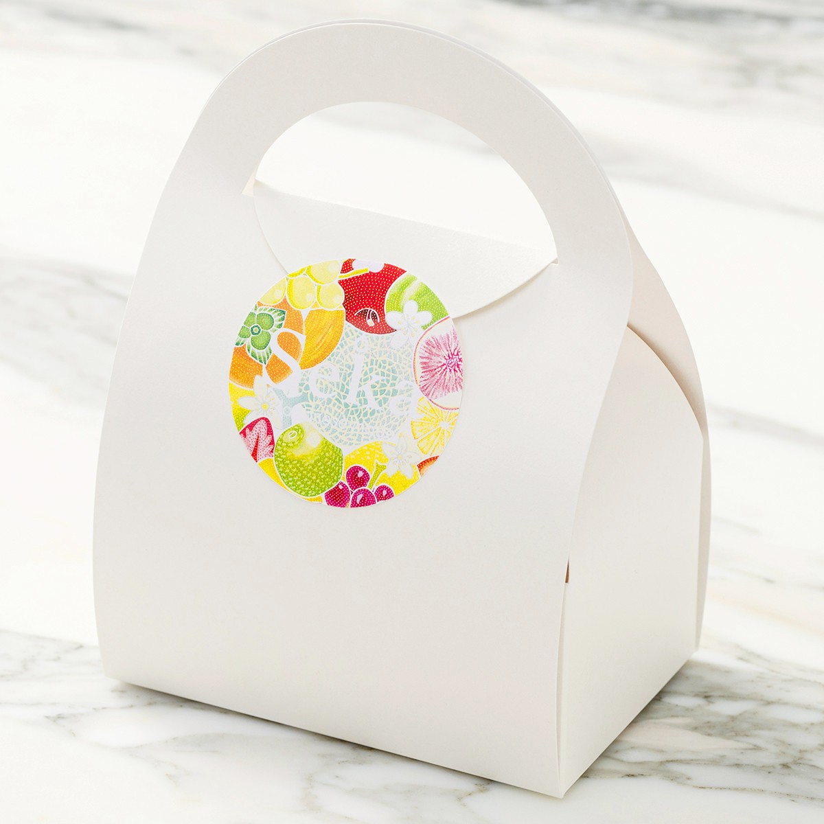 溢れんばかりのフルーツなシールはパラリンアート作家KOTOさんの手書きイラストで、開けた時の心踊る美しさをお楽しみいただけるギフトです。