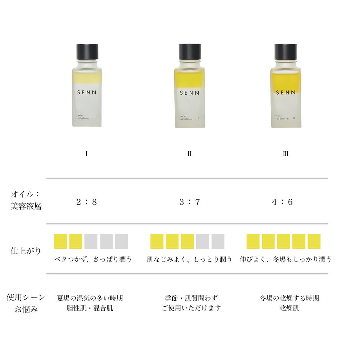 油層は保湿力が高く肌馴染みが良いオイル成分を中心配合し、肌質に合わせて配合量を変え、水層はすべての肌悩みに合わせた成分を処方。