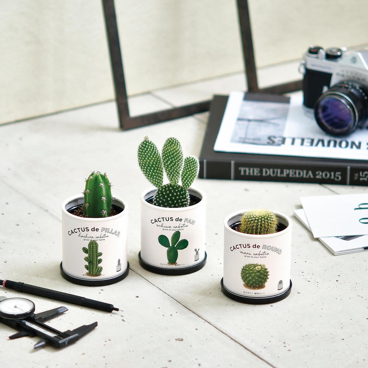 ぷっくりとした質感が何とも可愛らしくて癒される、とインテリアとして人気のあるサボテンを、種から育ててみませんか?姿形のバリエーションが豊富なサボテンの中から、コロンと丸い「丸サボテン」、にょきっと真っすぐ伸びる「柱サボテン」、手のひらみたいな「ウチワサボテン」の、親しみやすい3種類を選んでセットにしました。