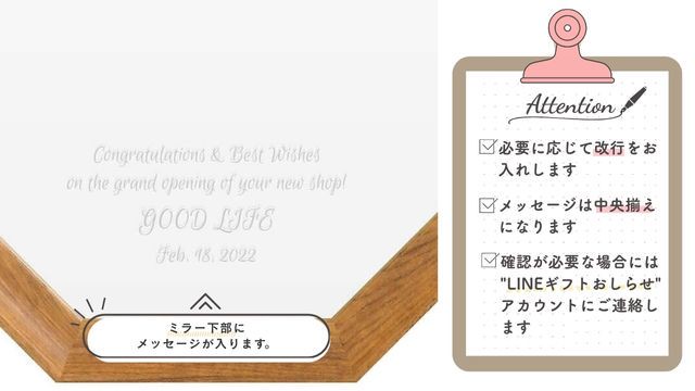 ミラー下部にご希望のメッセージが入ります。