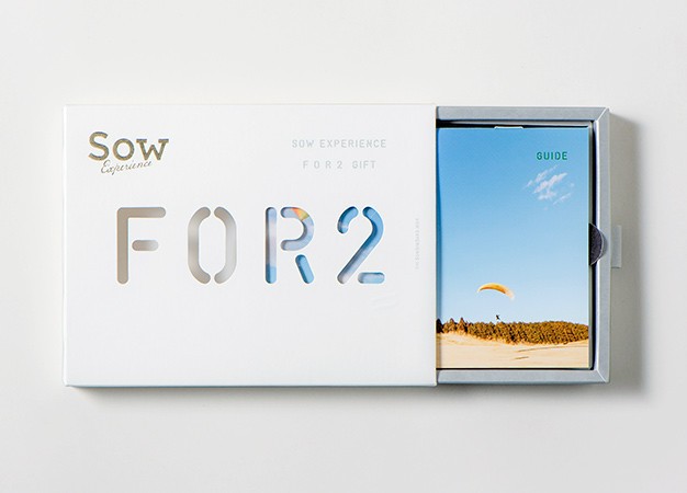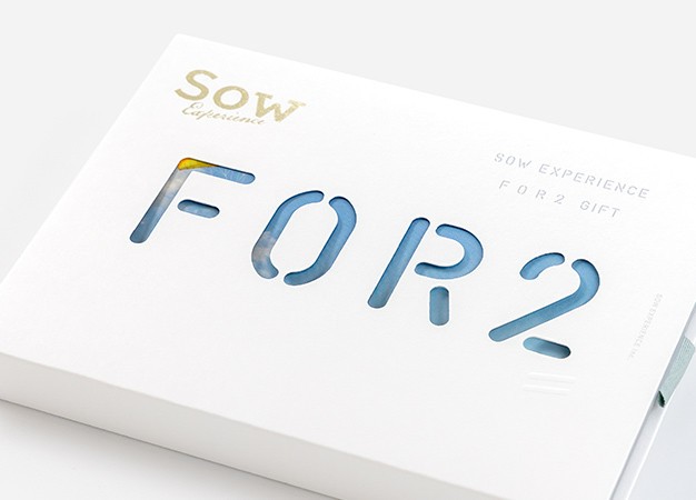 専用のギフトボックスのリボンをつまんで引き出すと、「FOR2」の文字の形に透けていた冊子の表紙が現れます。