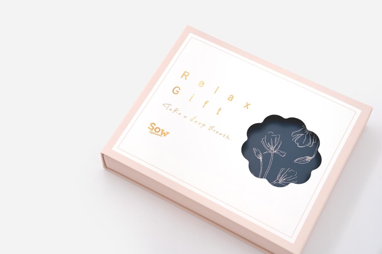 ゆっくりと自分のための時間を過ごしてほしい。そんなメッセージを箱や冊子の隅々まで込めています。
