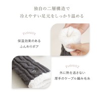 ・ボアとケーブル編みの毛糸の二層構造が冷えやすい足元をしっかり包み込み、温かさをずっとキープ。