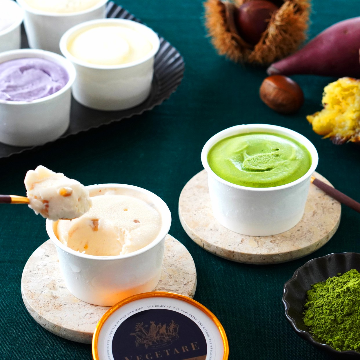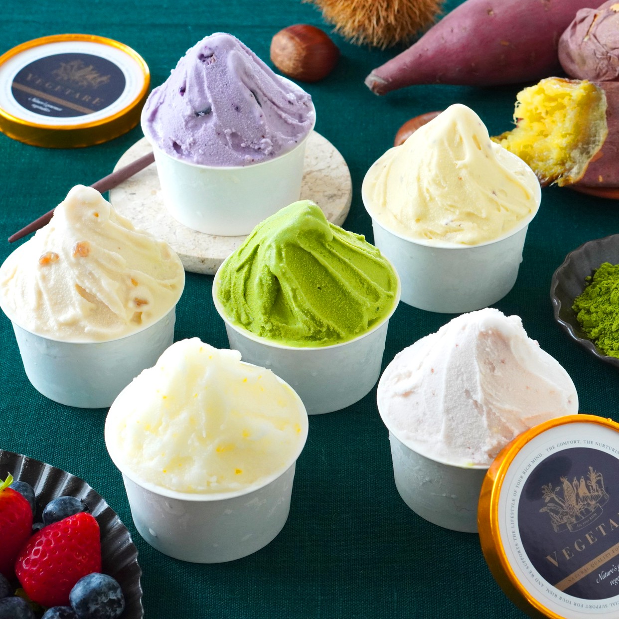 ベジターレが厳選した国産フルーツや抹茶を使用したアイスジェラートの贅沢セット。