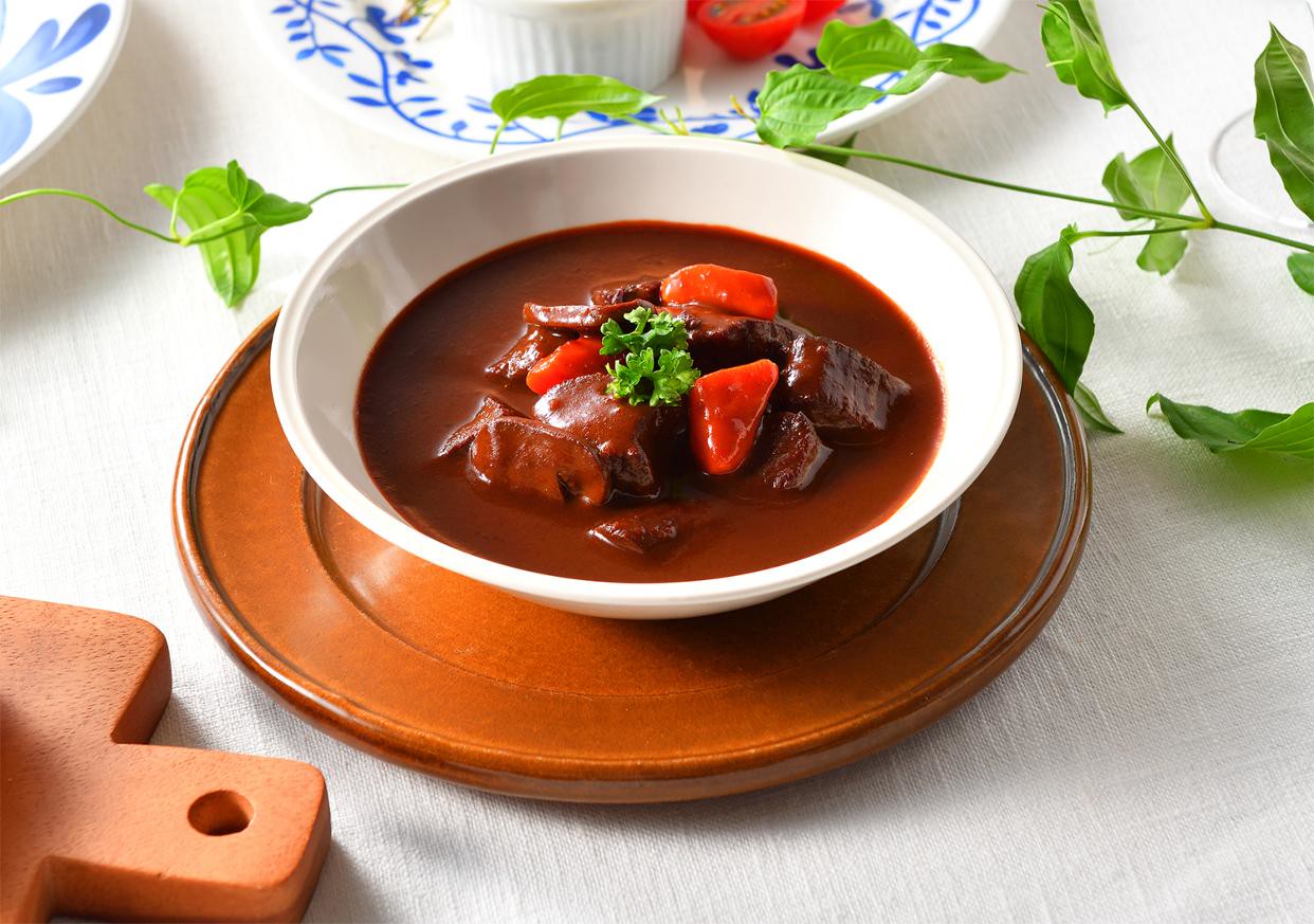 濃厚なデミグラスソースに、肉厚牛たんをごろごろ入れた贅沢なシチュー