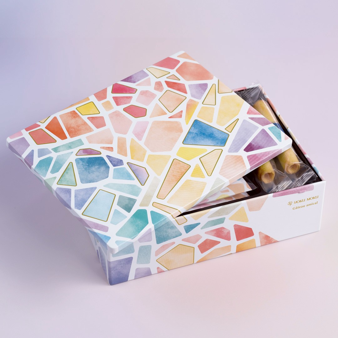 蓋を開けた瞬間に思わず笑顔になれる、ヨックモックのクッキーをそっと詰め込んだ、やさしい気持ちを届ける小さなアソートギフトです。