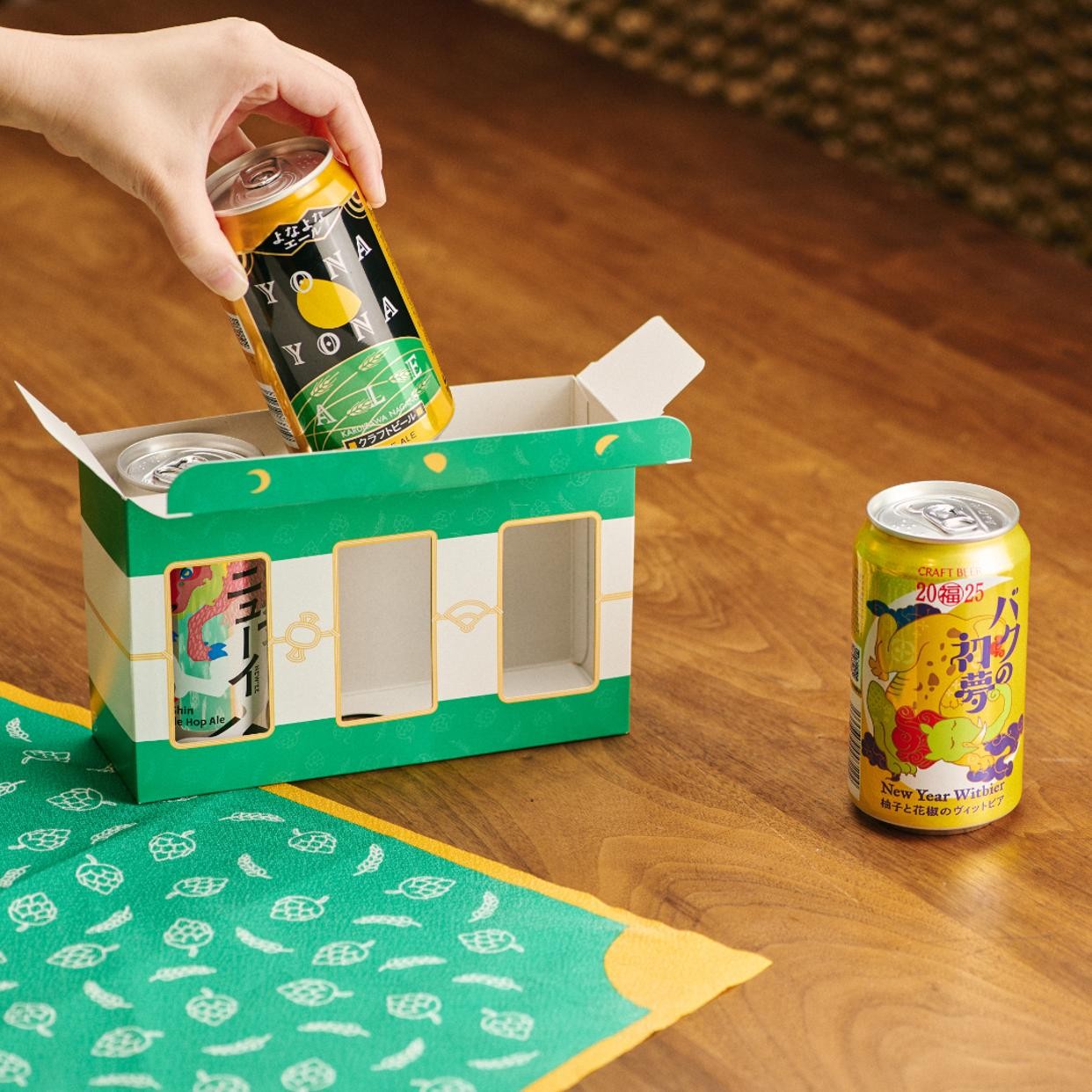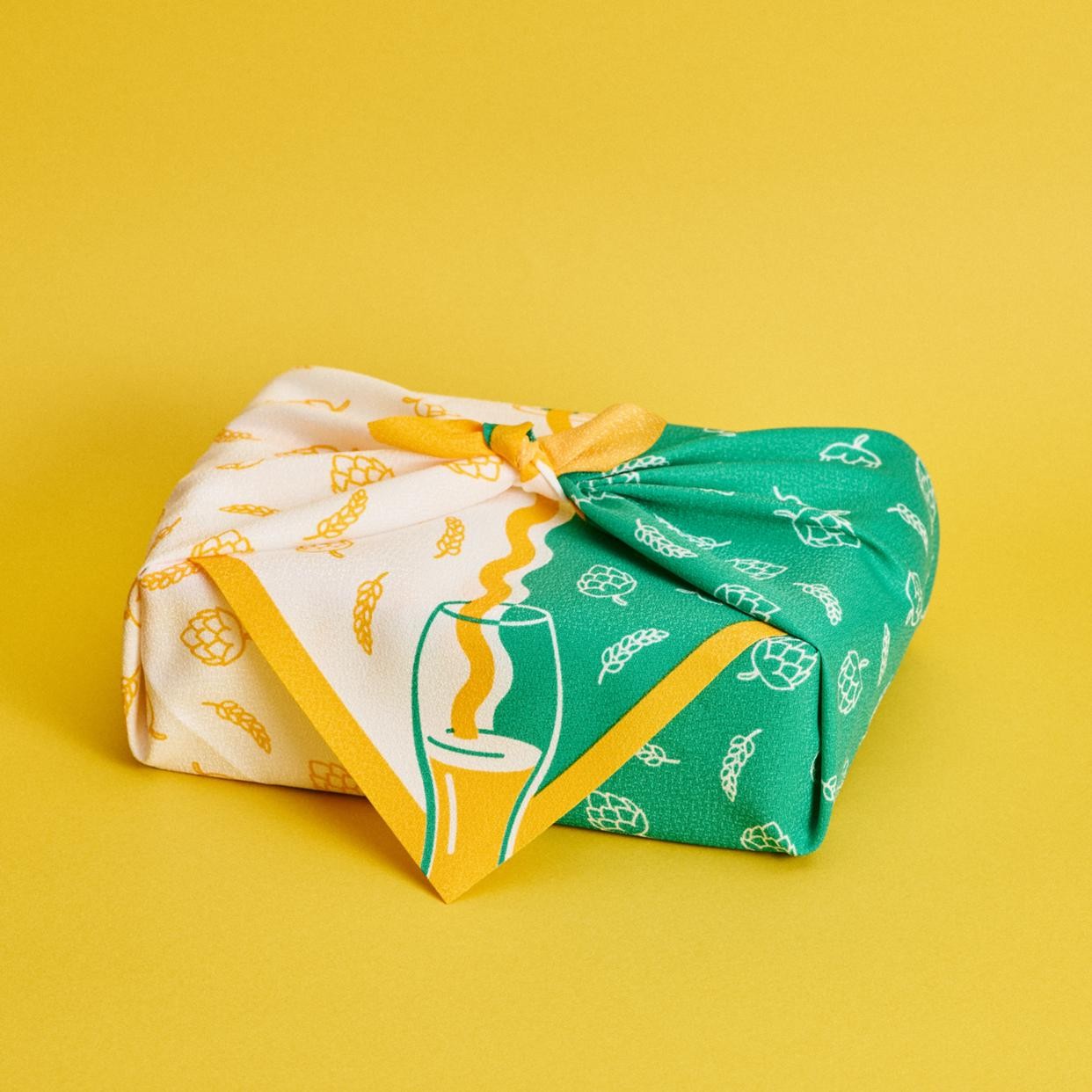 ビールやビールの原材料でもある麦やホップがデザインされた風呂敷にスタッフが一つ一つ手作業で包装してお届けします。ラッピングに使用した風呂敷は、ギフトを開けた後もランチクロスやスカーフなど様々なシーでご利用いただけます。大切な方への贈り物はもちろん、自分へのご褒美ギフトとしてもお楽しみください。