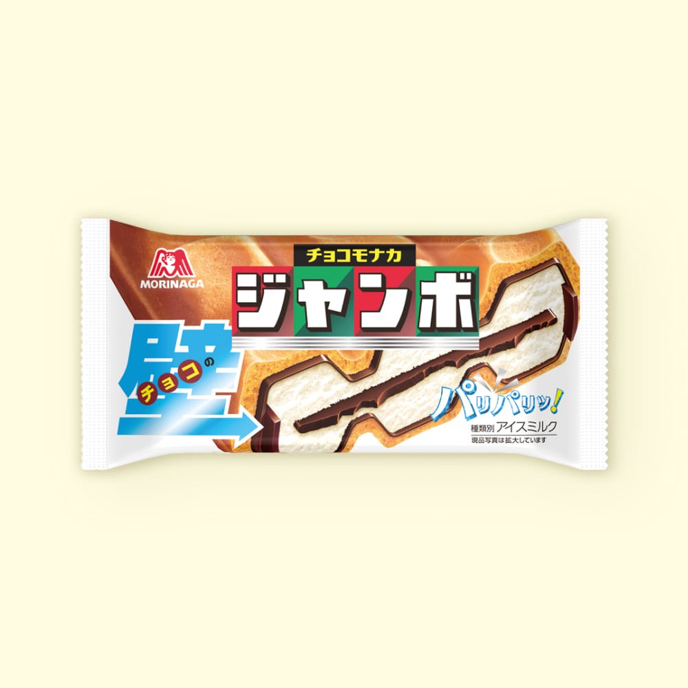 アイスの中にパリパリ食感のチョコが入った森永チョコモナカジャンボ。